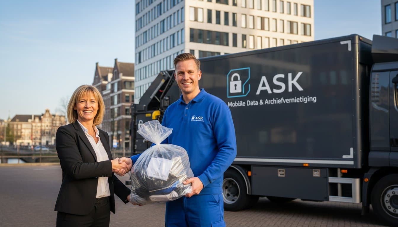 Kiezen voor ASK Mobiele Archiefvernietiging betekent kiezen voor 100% zekerheid, gemak en een duurzame verwerking. Wij combineren jarenlange ervaring in de vernietiging van vertrouwelijke data met een gespecialiseerde aanpak voor productvernietiging.